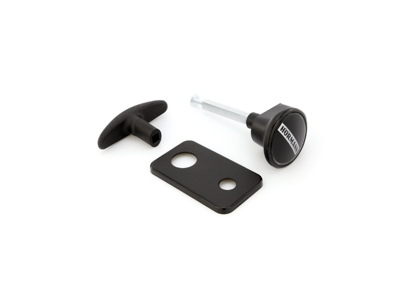 • 1 × zestaw klamek do drzwi garażowych Hörmann, czarne tworzywo, PZ TS 42,5