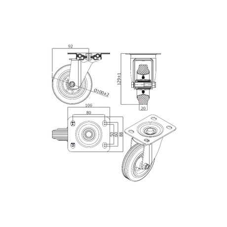 36,00 zł PLNCena jednostkowa /Nie płynnyKoło metalowo-gumowe fi 100mm w obudowie skrętnej - 12LS