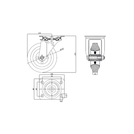49,00 zł PLNCena jednostkowa /Nie płynnyKoło metalowo-gumowe fi 125mm w obudowie skrętnej - 22S
