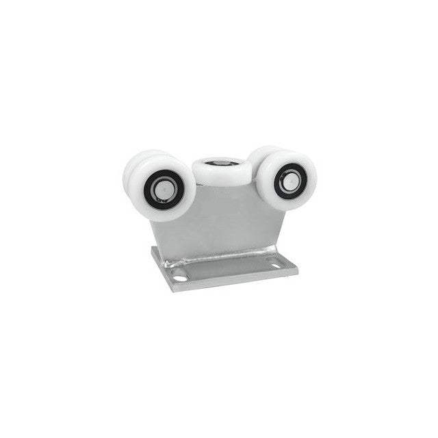 Oferowany 5 rolkowy, stały wózek do bram bez możliwości regulacji wysokości przeznaczony jest do profilu o wymiarach 80x80x4mm. Wózek o dopuszczalnym obciążeniu do 500kg posiada 5 rolek poliamidowych.