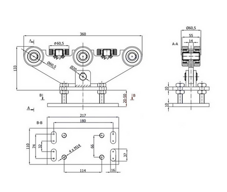 216,00 zł PLNCena jednostkowa /Nie płynnyWózek do bramy - 8 rolkowy, stały (PROFIL 70x70x4mm) - 8T-70