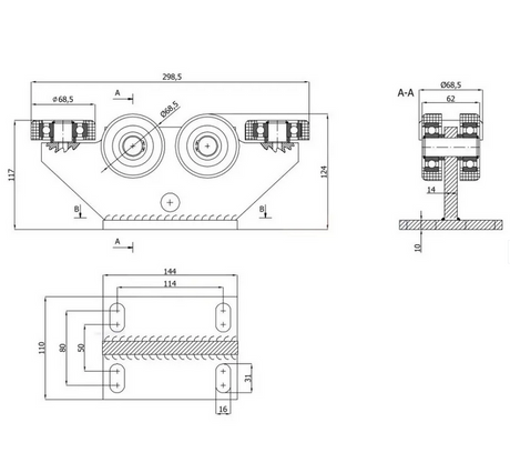 89,00 zł PLNCena jednostkowa /Nie płynnyWózek stały z regulacją wysokości do bramy przesuwnej do profilu: 80x80x5 - R-5T-80