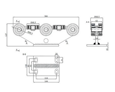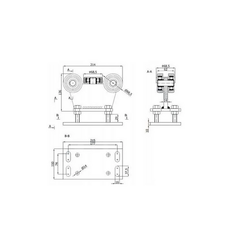 150,00 zł PLNCena jednostkowa /Nie płynnyWózek stały z regulacją wysokości do bramy przesuwnej do profilu: 80x80x5 -R-5M-80