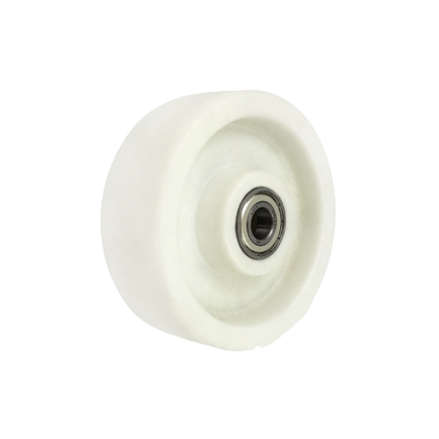 Koła i kółka tworzywowe odporne na wysoką temperaturę do 150°C posiada jednolity korpus wykonany wtryskowo z poliamidu PA 6. Poliamid PA 6 zawiera 30% włókna szklanego, co wpływa na jego stabilizację termiczną, zapewnia wysoką odporność cieplną. Koła te występują również w kolorze białym. Dostępne są z łożyskiem ślizgowym.