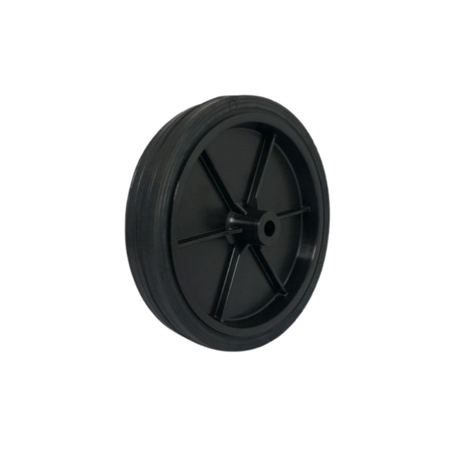 Jednolity korpus koła wykonany jest wtryskowo z polipropylenu w kolorze czarnym. Opona koła wykonana z gumy pełnej w kolorze czarnym. Koła i kółka do kosiarek charakteryzują się niskim oporem toczenia.