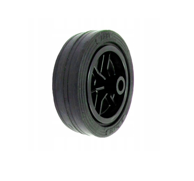 Jednolity korpus koła wykonany jest wtryskowo z polipropylenu w kolorze czarnym. Opona koła wykonana z gumy pełnej w kolorze czarnym. Koła i kółka do kosiarek charakteryzują się niskim oporem toczenia.