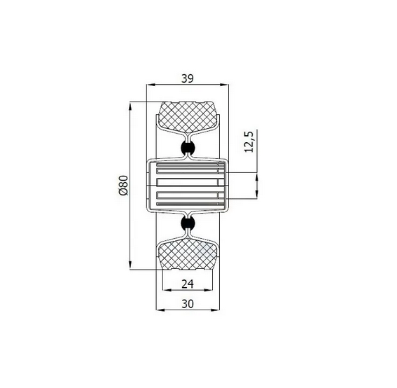 Koło transportowe fi 80mm metalowo gumowe łożysko wałeczkowe otwór 12mm - 1 jest zamówione i zostanie wysłane jak tylko pojawi się na stanie.