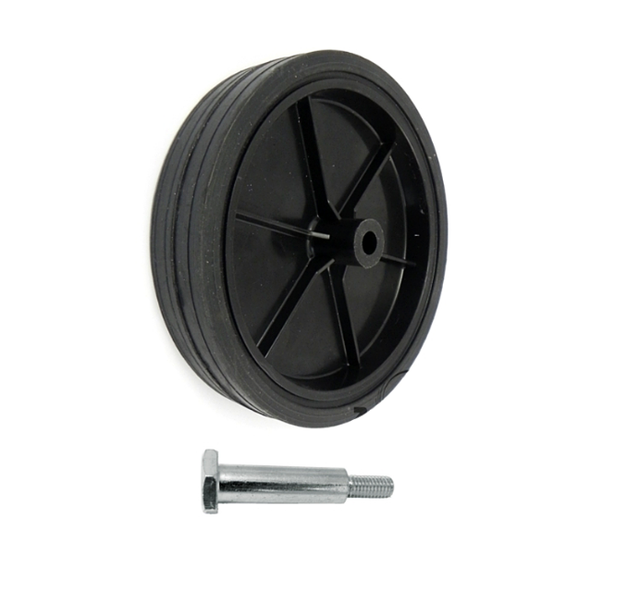 Jednolity korpus koła wykonany jest wtryskowo z polipropylenu w kolorze czarnym. Opona koła wykonana z gumy pełnej w kolorze czarnym. Koła i kółka do kosiarek charakteryzują się niskim oporem toczenia.