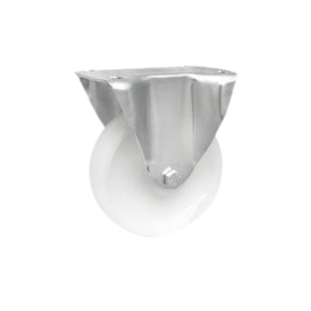 Koła tworzywowe w obudowie stałej składają się z koła poliamidowego PA 6 oraz ze stabilnej stalowej obudowy tłoczonej. Koło występujące w tej obudowie osadzone jest na tulejce, montowane jest z kielichem obudowy za pomocą śruby i nakrętki. Zestawy kołowe stałe nie obracają się. Takiego typu obudowa zapewnia urządzeniom stabilność kierunku w linii prostej. Koła i kółka tworzywowe posiadają niski współczynnik tarcia, a także wysoką odporność cieplną, dopuszczalna temperatura pracy ciągłej to przedział od -20 do +80°C.
