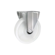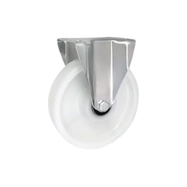 Koła tworzywowe w obudowie stałej składają się z koła poliamidowego PA 6 oraz ze stabilnej stalowej obudowy tłoczonej. Koło występujące w tej obudowie osadzone jest na tulejce, montowane jest z kielichem obudowy za pomocą śruby i nakrętki. Zestawy kołowe stałe nie obracają się. Takiego typu obudowa zapewnia urządzeniom stabilność kierunku w linii prostej. Koła i kółka tworzywowe posiadają niski współczynnik tarcia, a także wysoką odporność cieplną, dopuszczalna temperatura pracy ciągłej to przedział od -20 do +80°C.