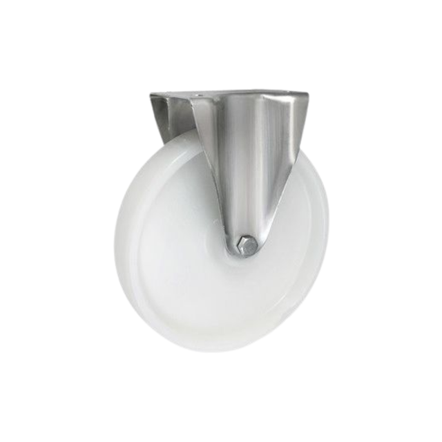 Koła tworzywowe w obudowie stałej składają się z koła poliamidowego PA 6 oraz ze stabilnej stalowej obudowy tłoczonej. Koło występujące w tej obudowie osadzone jest na tulejce, montowane jest z kielichem obudowy za pomocą śruby i nakrętki. Zestawy kołowe stałe nie obracają się. Takiego typu obudowa zapewnia urządzeniom stabilność kierunku w linii prostej. Koła i kółka tworzywowe posiadają niski współczynnik tarcia, a także wysoką odporność cieplną, dopuszczalna temperatura pracy ciągłej to przedział od -20 do +80°C.