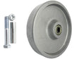 Koło żeliwne o średnicy 250mm do dużych obciążeń składa się z jednolitego, obrabianego maszynowo korpusu z odlewu żeliwnego. Koła występują z łożyskiem kulkowym. Łożysko kulkowe osadzone jest w piaście żeliwnej koła z tuleją dystansową. Koła żeliwne są pokryte farbą proszkową w kolorze srebrnym. Cechują się wysoką wytrzymałością na obciążenia i posiadają wysoką odporność na zużycie. Mogą pracować w szerokim zakresie temperatur od -50 do +150°C. Koła żeliwne są bardzo odporne na ścieranie, uderzenia i zarysowania oraz niewielkim oporem toczenia. W przypadku podłoża wrażliwego należy mieć na uwadze względnie wysoki nacisk koła na podłoże. Koło żeliwne sprzedawane jest w zestawie ze śrubą i tuleją dystansową.