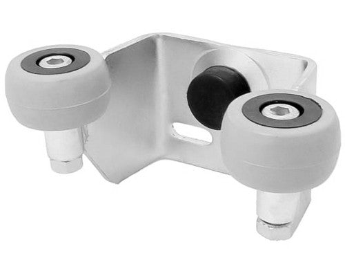 Mocowanie górne bramy z rolkami przeznaczone do profilu 40x40mm. Mocowanie górne bramy dzięki wykorzystaniu gumowych rolek oraz gumowego odbojnika zapewnia ciche domykanie bramy oraz zabezpiecza przed uderzeniem. Charakteryzują się precyzyjnym wykonaniem oraz solidna konstrukcją.
