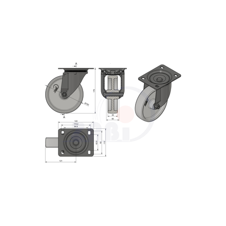 50,00 zł PLNCena jednostkowa /Nie płynnyKoło poliamidowe fi 160mm w obudowie stałej do wózków i maszyn - 43BN