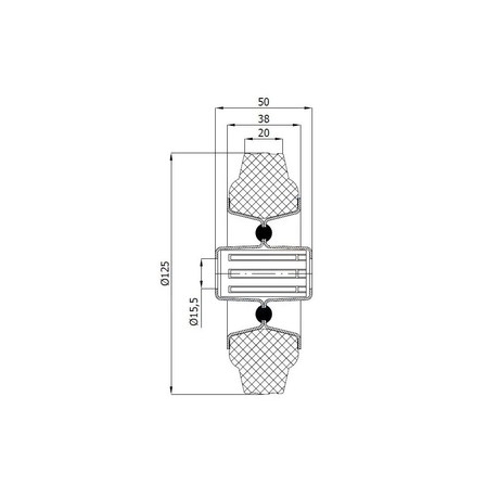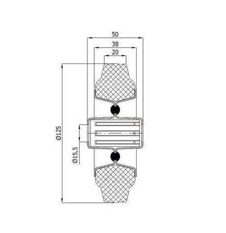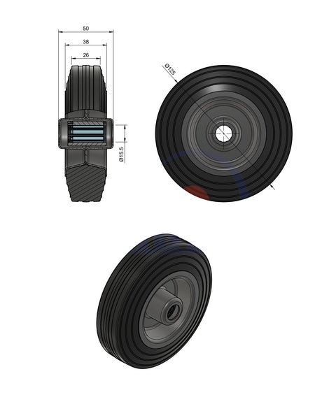 25,00 zł PLNCena jednostkowa /Nie płynnyKoło transportowe fi 125mm metalowo gumowe łożysko wałeczkowe otwór 15mm - 20