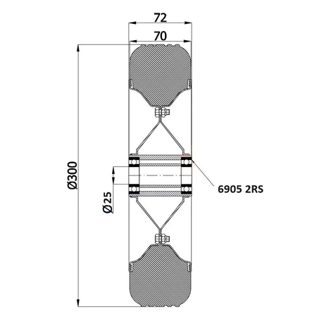 Koło transportowe fi 300mm metalowo gumowe łożysko kulkowe otwór 20mm - 100ŁS/20