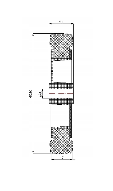 32,00 zł PLNCena jednostkowa /Nie płynnyKoło tworzywowo-gumowe fi 250 mm ciche, nośne, do sprzętu transportowego i regałów 99T/20