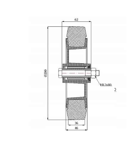 13,00 zł PLNCena jednostkowa /Nie płynnyKoło transportowe fi 80mm metalowo gumowe łożysko wałeczkowe otwór 12mm - 1S
