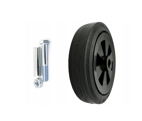 17,00 zł PLNCena jednostkowa /Nie płynnyKoło tworzywowo-gumowe fi 160 mm ciche, nośne, do sprzętu transportowego i regałów ze śrubą - 41T