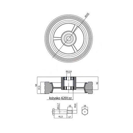 19,00 zł PLNCena jednostkowa /Nie płynnyKoło do kosiarki z zestawem montażowym fi 150 K150*M10
