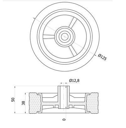 69,00 zł PLNCena jednostkowa /Nie płynnyKoło do kosiarki z zestawem montażowym fi 125 K125*M10